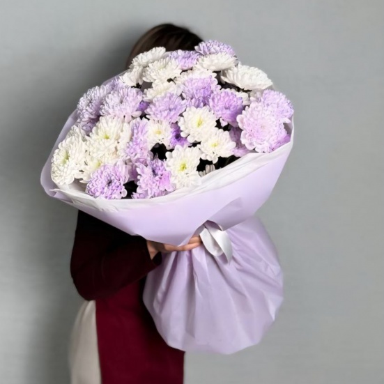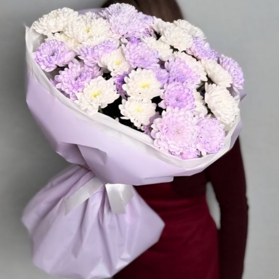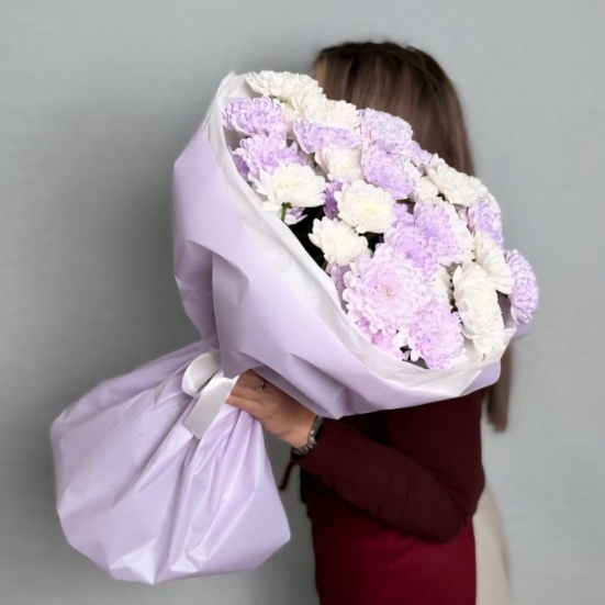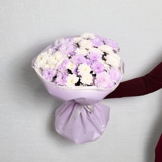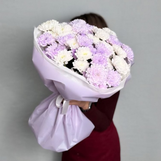 Букет из 9 фиолетовых и белых хризантем в Липецке