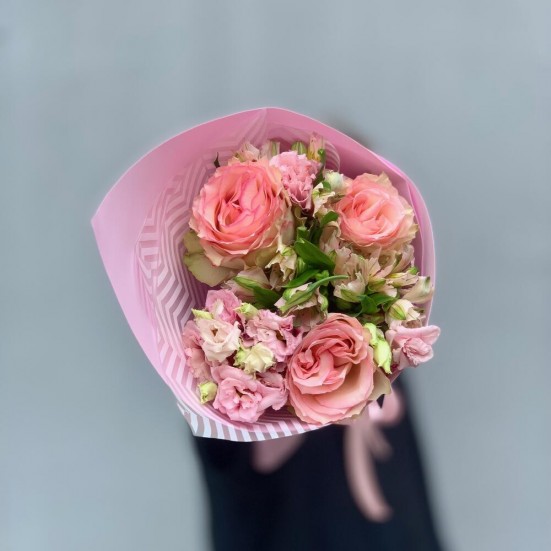 Букет из роз альстромерий и эустомы