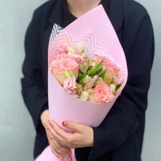 Букет из роз альстромерий и эустомы в Липецке